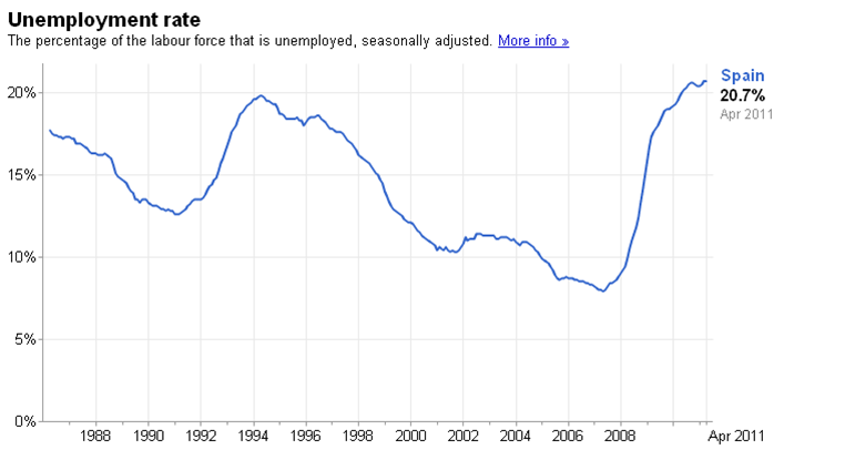 In short the civil war was a failure on the behalf of the Republic. At the time the European powers were wary of the costs of war so the Republic was left to recuperate a country it never fully controlled by itself- until the USSR got involved. As Franco’s military possessed more arms and had the aid and support of Mussolini and Hitler, the Republic called for the military aid of the USSR. Stalin was opposed to the more democratic nature of the anarcho-syndicalist and socialist troops fighting for the Republic. He actively fought against them, instead of actually fighting the common enemy: Franco. Many anarchists and socialists were executed, if not by Stalin by Franco once he won the war. This decimated the number of Trotskyist and anarcho-syndicalist groups working around the country. The fascist dictatorship, which lasted as long as 40 years in some parts of the country imposed a culture, a history and sense of unity which have only started to be questioned now. To understand Spain now we have to be aware that it has only had 30 years worth of ‘democracy’, moreover its transition to a democratic state took place when the UK and the USA were jumping onto the ideas of neo-liberalism. Spain has had low-salaried jobs for decades, unions have never had much strength since the late thirties and the introduction to the EU in 87 forced it to become even more of a low-wage economy with few incentives for a higher education. Nowadays a ‘good’ job in Spain is one earning a 1000 euros a month and the minimum wage is 624 euros, incomparable to the rest of Europe. In France the minimum wage is above 1350 euros a month. Housing in Barcelona or Madrid can easily cost around 600 euros, add on to that the relatively high price of food, the price of electricity, transport, education... It is no wonder Spanish youths live at home until they’re thirty. Low-paying jobs, high rents, an awful system of education and the constant bombardment of capitalist products makes it difficult, but more so if unemployment is at an average of 21%, 45% for youths. In this aspect Spain resembles Northern Africa, the series of governments have happily abided the orders of the IMF- making Spain a heavily poor and indebted society- a lapdog of US interests since Franco’s time. In the last couple of years there have been job losses in the public sector, cut-backs in education, a raise in the retirement age and some unemployment benefits have been done with.